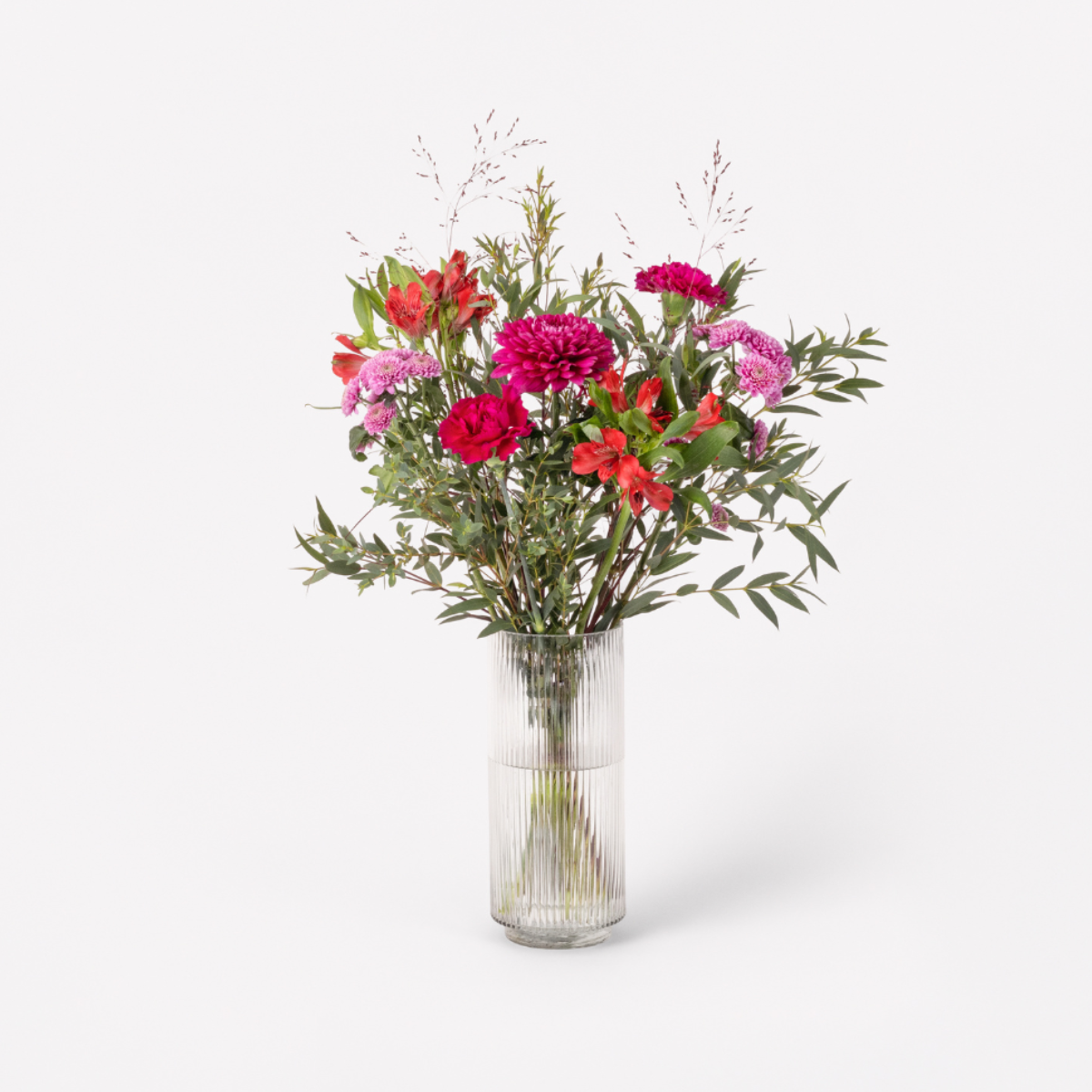 Send en hilsen med denne betagende buket med smukke blomster i varme rosa toner. Buketten er bundet i en tæt og lav bindestil, der skaber et elegant og moderne udtryk. Buketten leveres med en æske håndlavet kvalitetschokolade fra Cho Cho, med flere forskellige fyldninger, der sikrer noget for enhver smag. Blomsterne kan variere alt efter sortimentet hos den enkelte florist. Vase og den øvrige dekoration medfølger ikke.