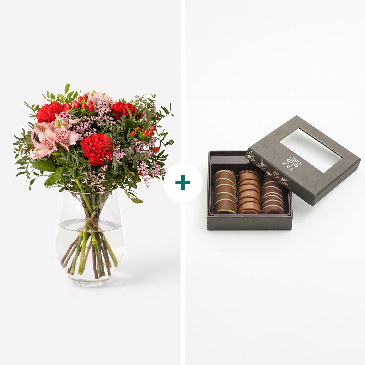 Send en smuk julehilsen bestående af denne yndige buket i skønne røde nuancer sammen med en behagelig Gran Passione. En økologisk rødvin med en krydret og frugtagtig smag med subtile søde undertoner og noter af egetræ, blomme, kanel, nelliker, vanilje, rosin og chokolade. Blomsterne i buketten kan variere alt efter sortimentet hos den enkelte florist. Ekskl. vase